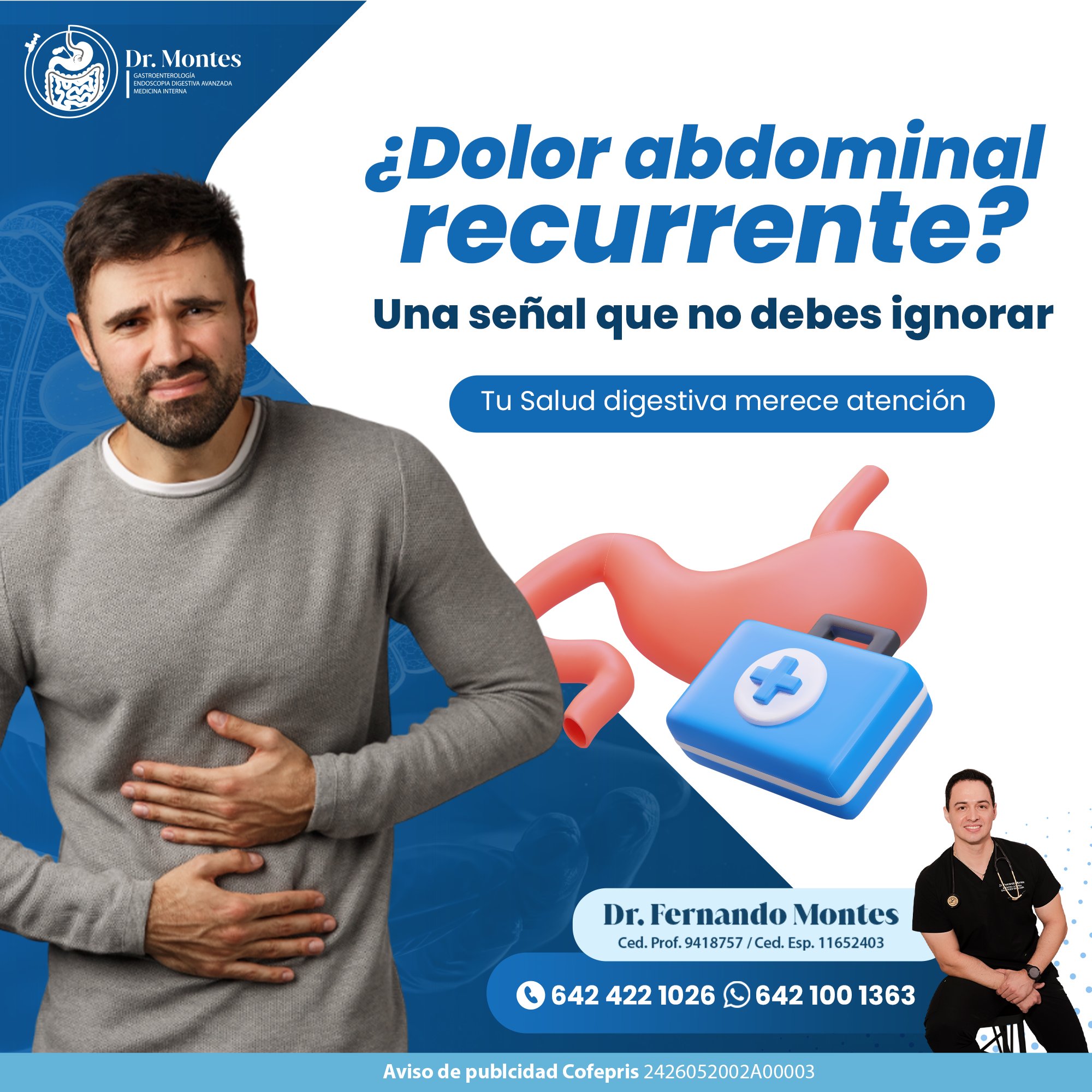 Contamos con más de 15 años de experiencia brindando atención médica especializada en el diagnóstico y tratamiento de enfermedades gastrointestinales. Nuestro compromiso es ofrecer una atención médica de calidad, centrada en el bienestar del paciente y en la identificación precisa de las molestias digestivas.